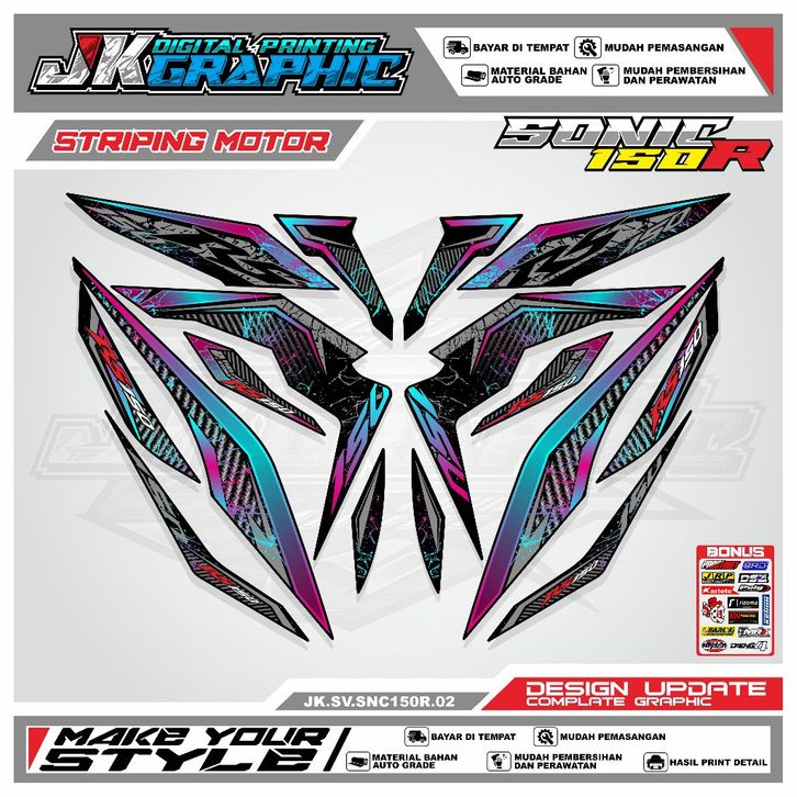 STRIPING SONIC 150R - STRIPING MOTOR MODIFIKASI VINYL HOLOGRAM UV TRANSPARAN CHROME RAINBOW