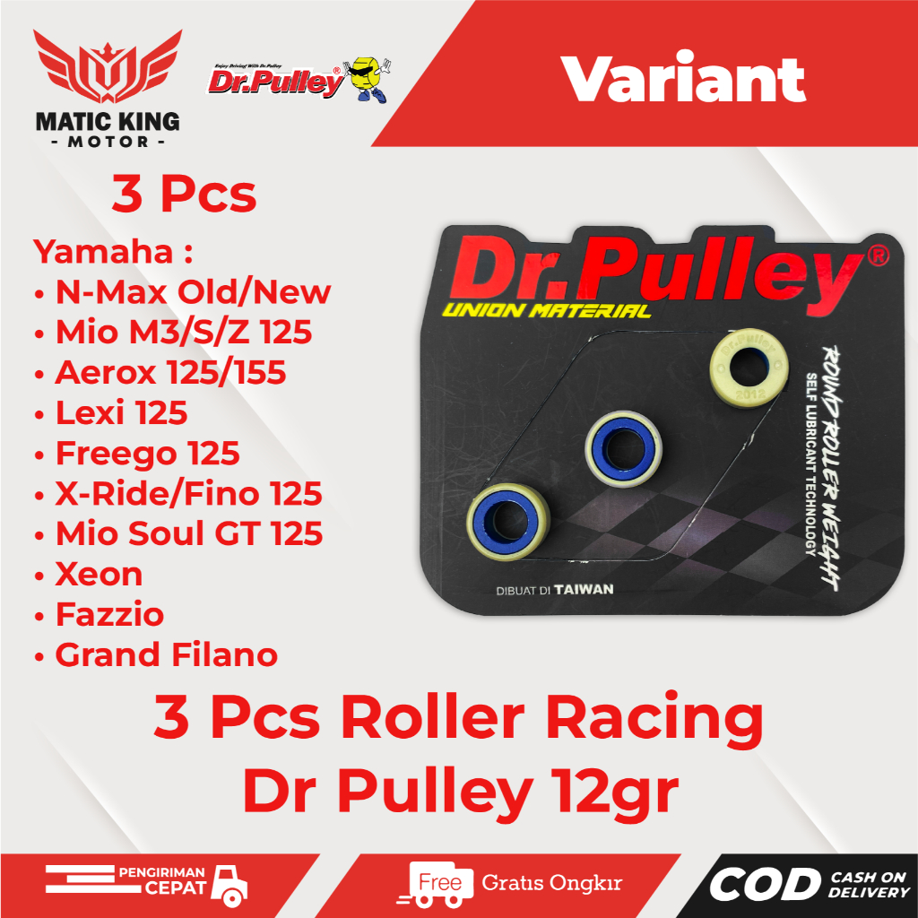 Dr Pulley Roller Nmax Lexi Aerox 08gram s/d 12gram Tipe 2012 Per 3 Butir