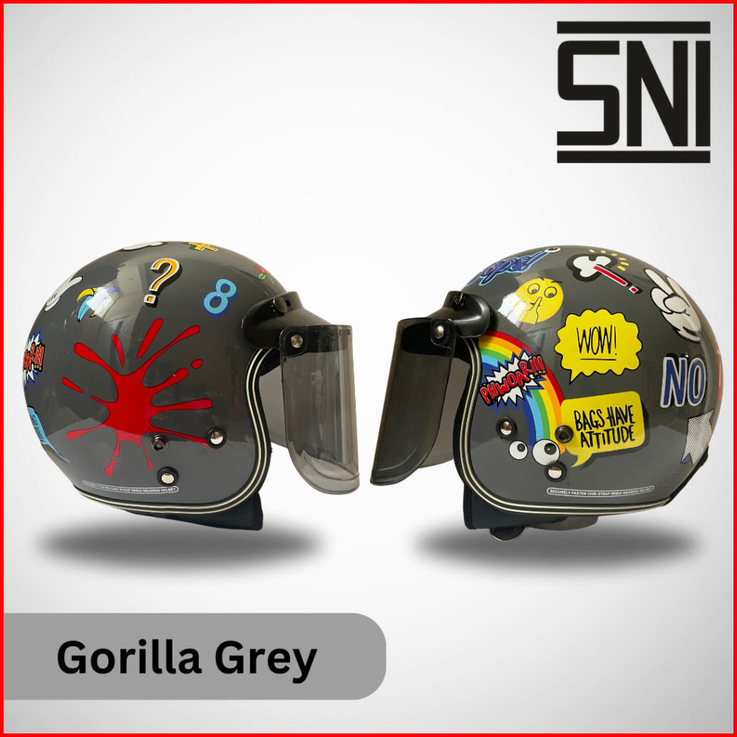 Bivi Helm Bogo Dewasa Gorilla Grey Motif Phow Pria Wanita Sni