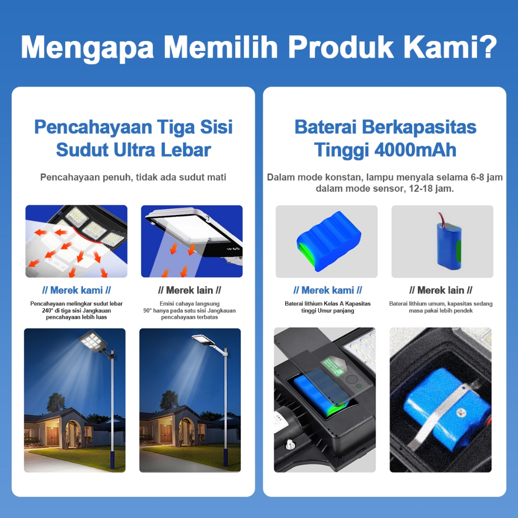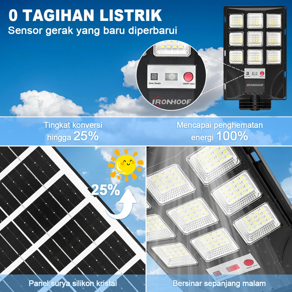 ( PROMO )IRONHOOF lampu tenaga surya 1500W lampu solar cell lampu outdoor IP67 Tahan air LED Lampu sorot Emergency