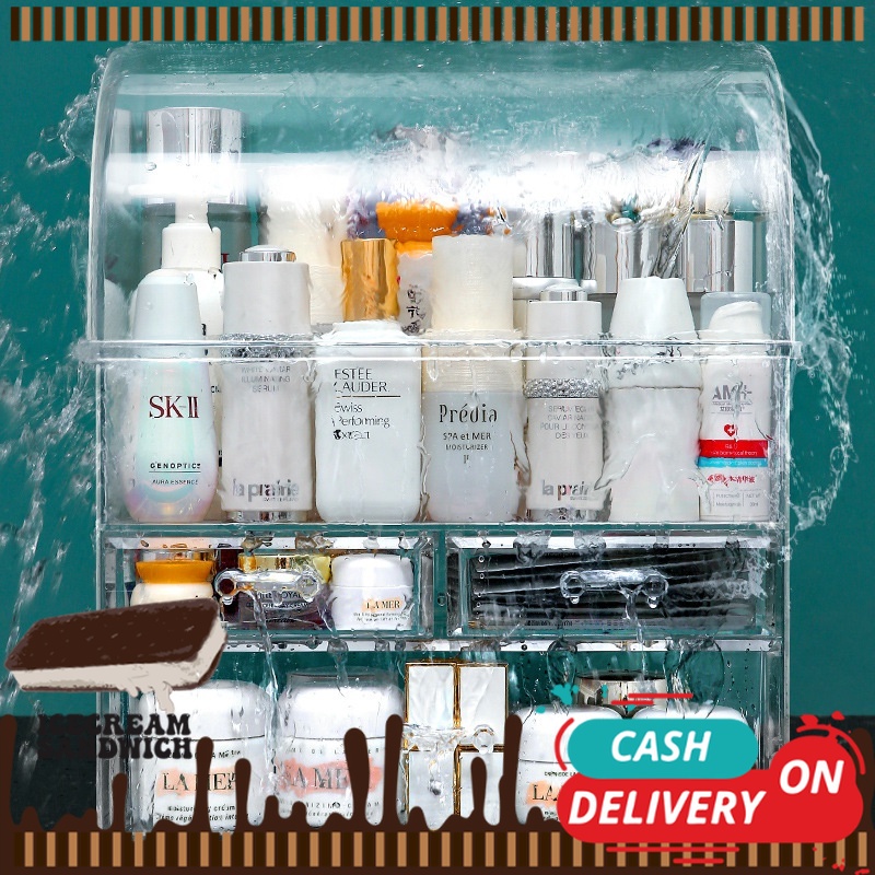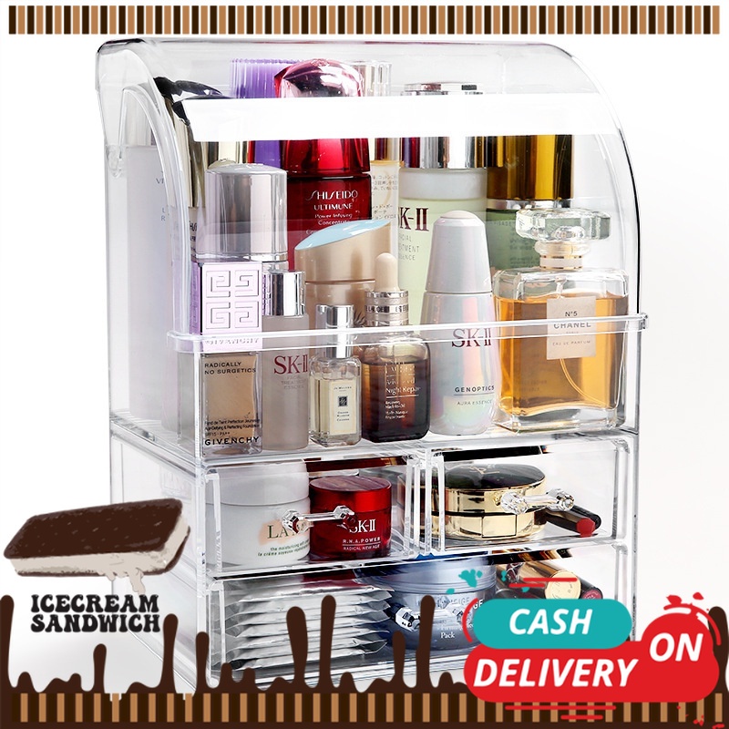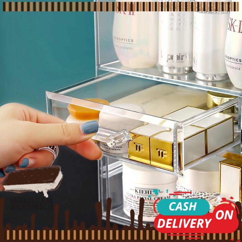 Rak Kosmetik Akrilik Dengan Laci | Storage Organizer Tempat Make Up Skincare Rak Akrilik