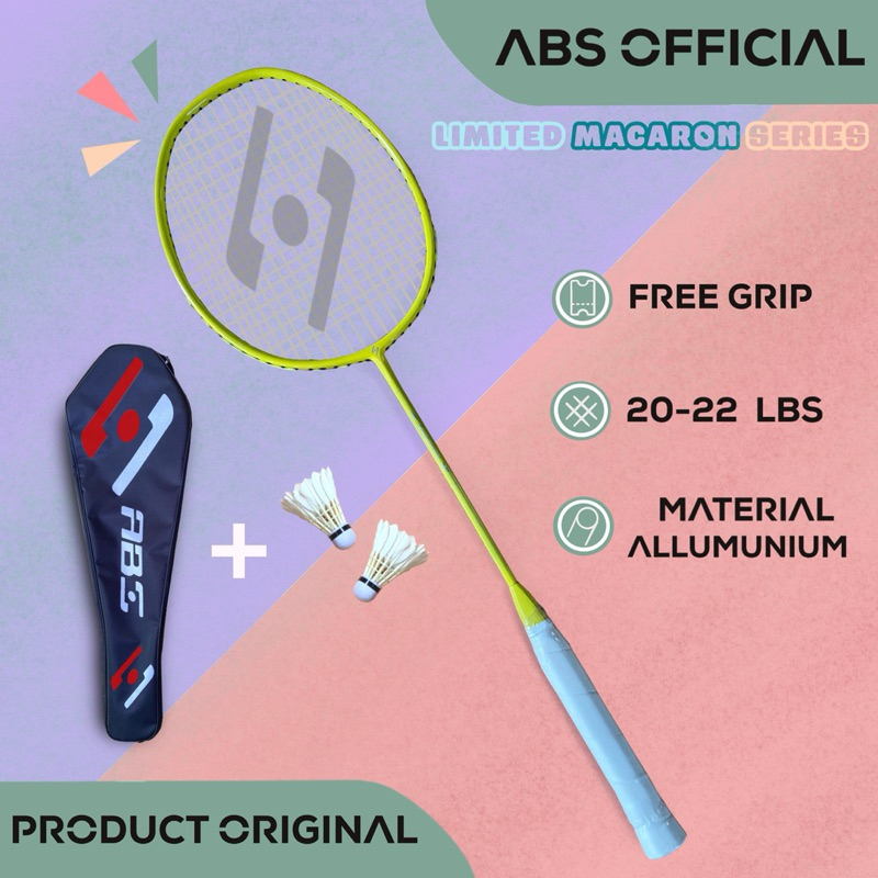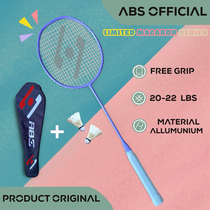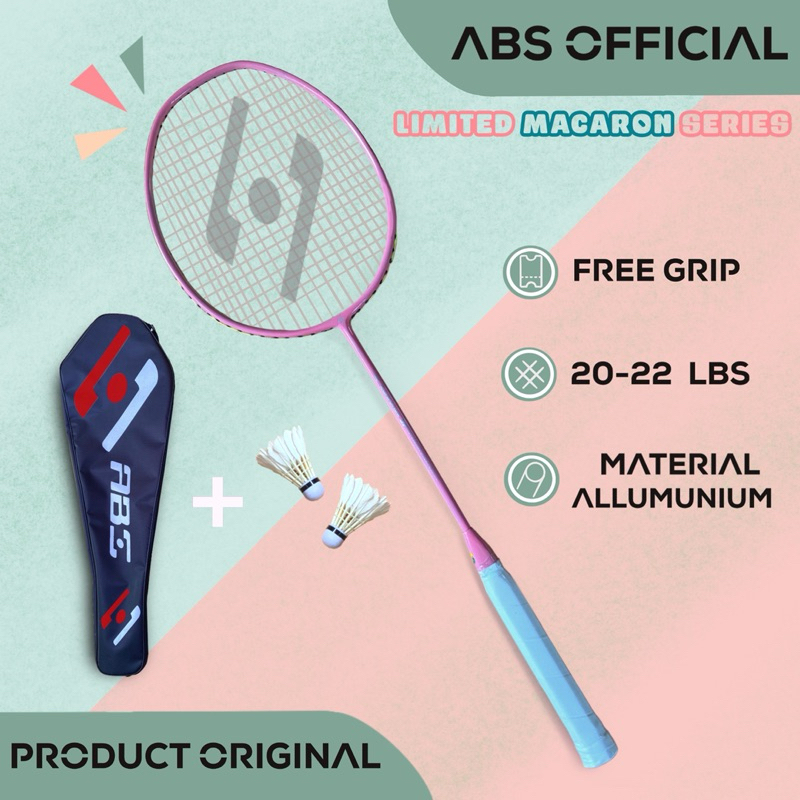 Raket Badminton ABS Macaron Edition Original | Raket Bulu Tangkis Ringan Free Tas, Shuttlecock & Grip