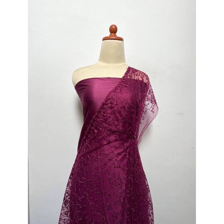 Paket Lengkap Bridesmaid / Kain Satin Velvet Roberto + Brukat Tile - Burgundy