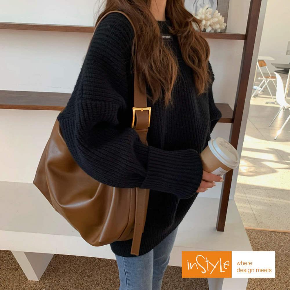 ( PROMO )Tas Bahu Selempang Wanita Korean Vintage Style Shoulder Bag Besar Kulit PU Leather Lembut (T2-004)
