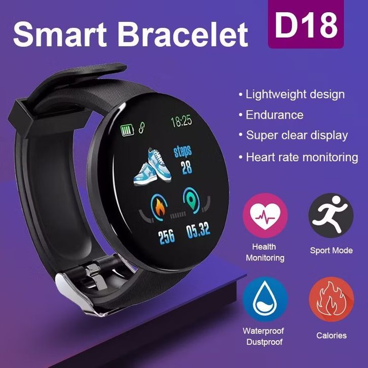 JAM TANGAN D18 Smart Watch Olahraga Tahan Air Pria dan Wanita Bluetooth Digital Smart Watch