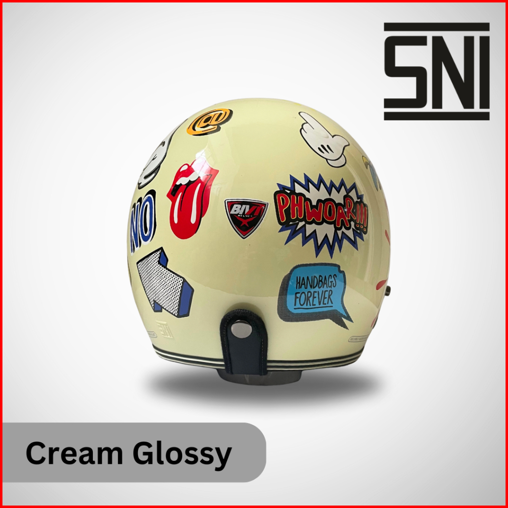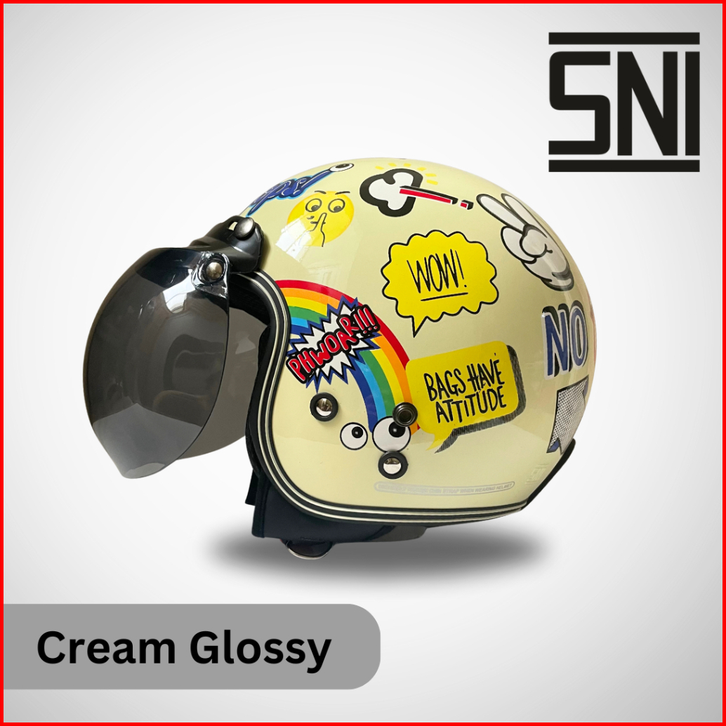 Helm Bogo Dewasa Cream Motif Phow Pria Wanita Sni