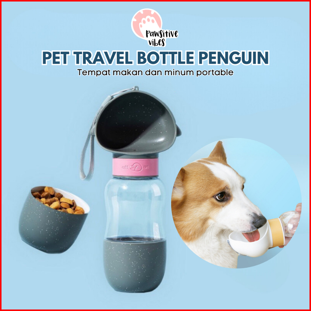 Pet Travel Bottle Penguin - Pet Feeder 2in1 Pet Travel Water Bottle Botol Minum Makan Anjing Kucing - Botol Minum Anjing