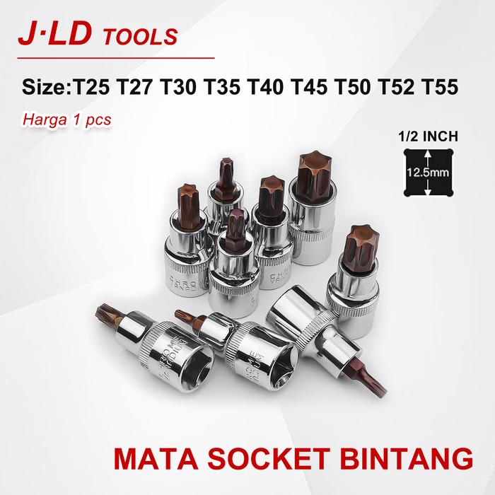 Murah J.LD Tool Mata Socket 1/2INCH Kunci Bintang T25-T55 Impact Bits Torx 55mm Bahan S2 CR-V - T25 Promo