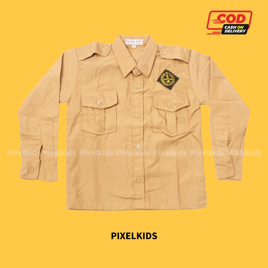 Kemeja Baju PRAMUKA Lengan Panjang Laki-Laki SERAGAM SEKOLAH SD SMP SMA PEMBINA Coklat Cowok