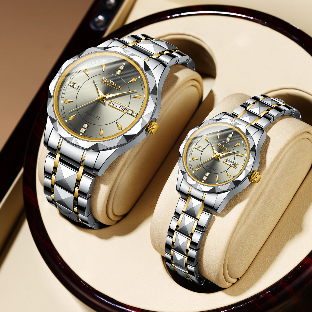 Jam Tangan Couple Anti Air Original S001 Pasangan Pria & Wanita Stainless Steel Luxury Kasual 2 Buah