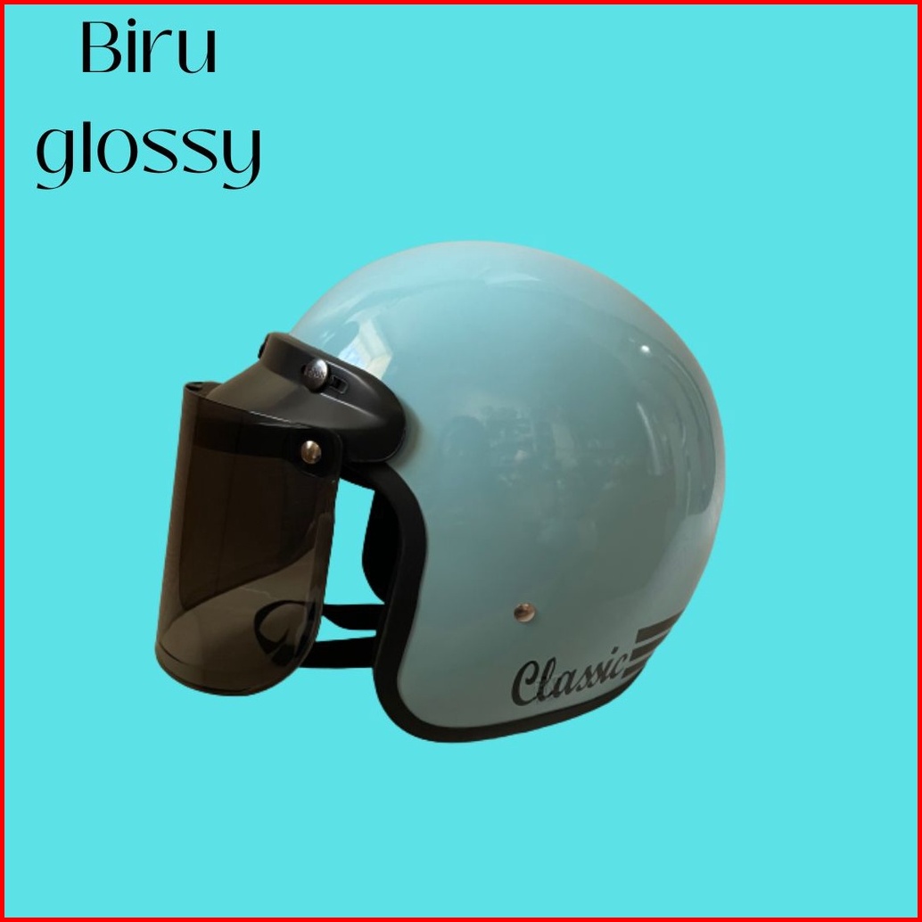 Helm Bogo Dewasa Classic Retro Wanita Pria Warna Terkini Sni Full Leher
