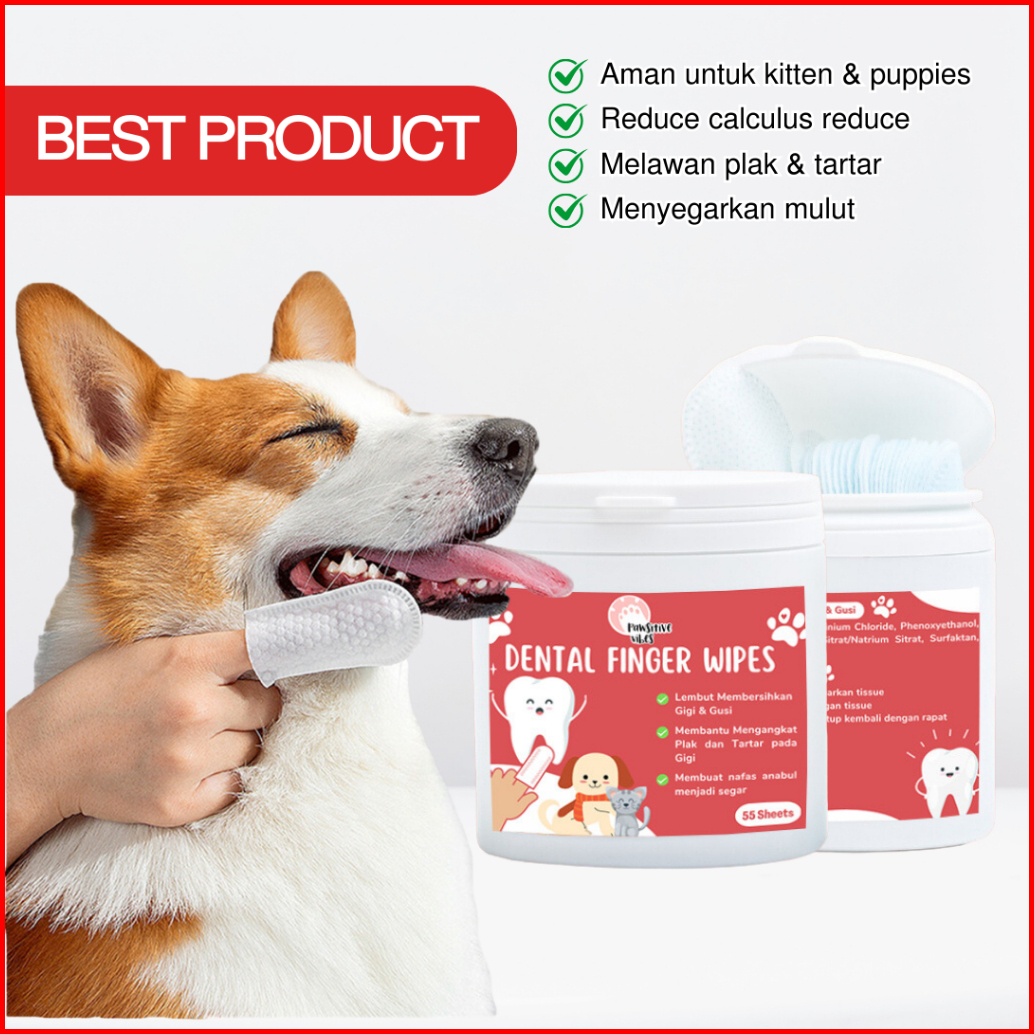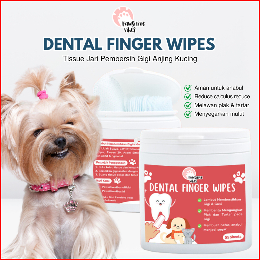 Pawsitive Vibes Tissue Jari Pembersih Gigi Anjing Kucing Isi 55pcs - Pet Dental Wipes Dental Care Finger Wipes - Sikat G