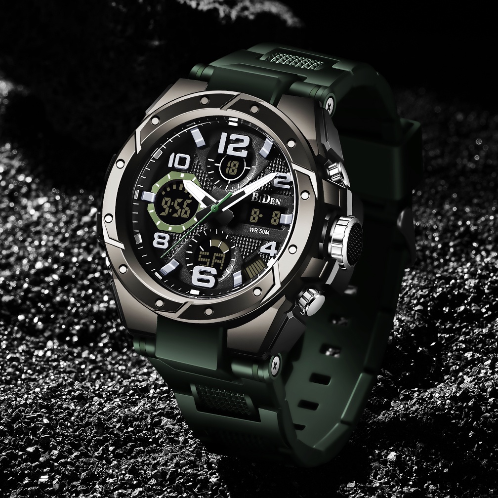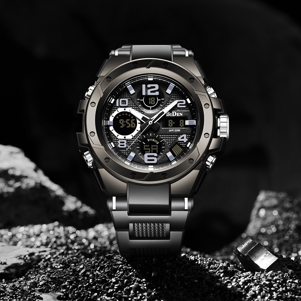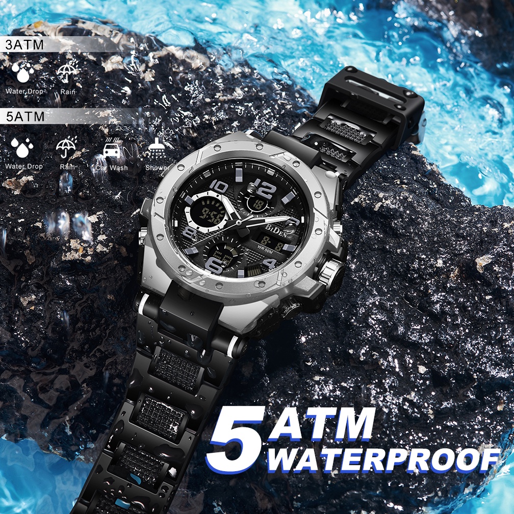 Jam Tangan Pria Original Anti Air Digital Analog Olahraga Multifungsi BIDEN R004 Cowok Tali Silikon