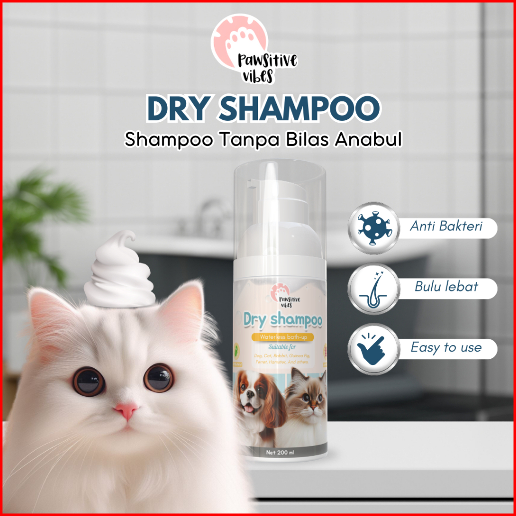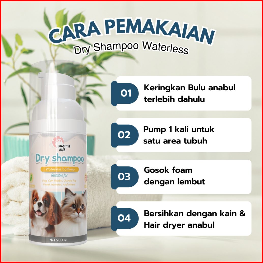 Pet Dry Shampoo Anjing Kucing 200ml - Shampo Foam Tanpa Bilas - Shampo Kering Hewan Peliharaan - Shampo Mandi Busa Kerin