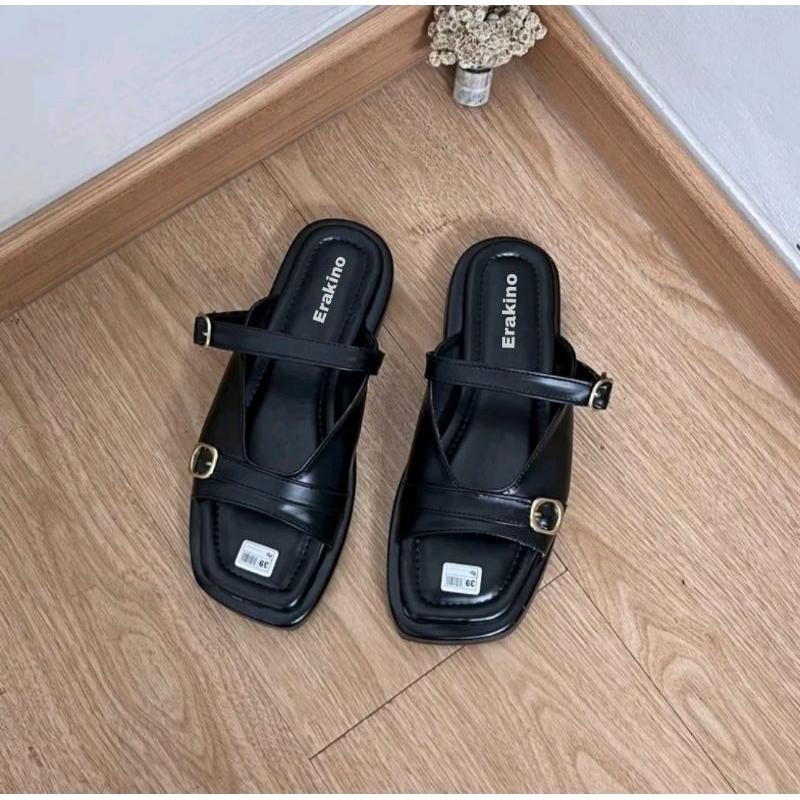 SHOE GALAXY Sandal Flat Wanita Empuk Sandal Platform Wanita Slip On Trendy Kekinian Hitam Maroon