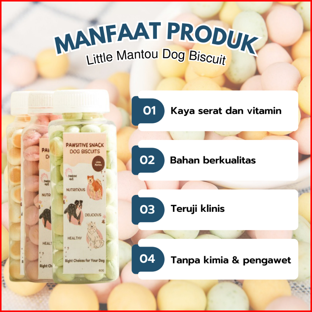 Little Mantou Dog Biscuit 60gram - Snack Cemilan Kalsium Puppy Anjing Dog Treat Cemilan Dog Snack Biscuit Anjing - Snack