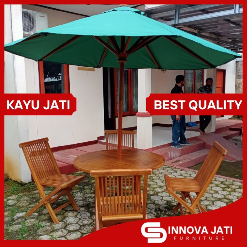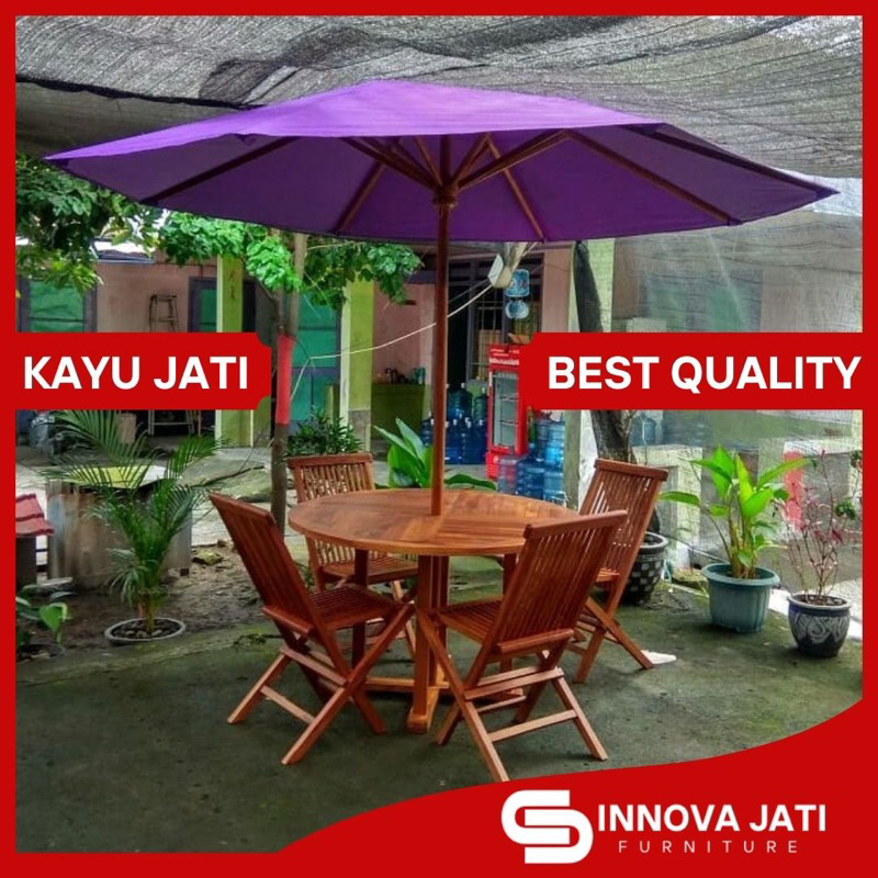 GRATIS ONGKIR Kursi Meja Payung Cafe Pantai Taman Outdoor Kayu Jati