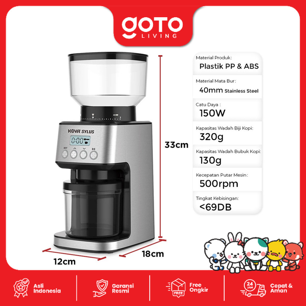 Kova Sylus Coffee Grinder Maker Digital Mesin Giling Biji Kopi Listrik