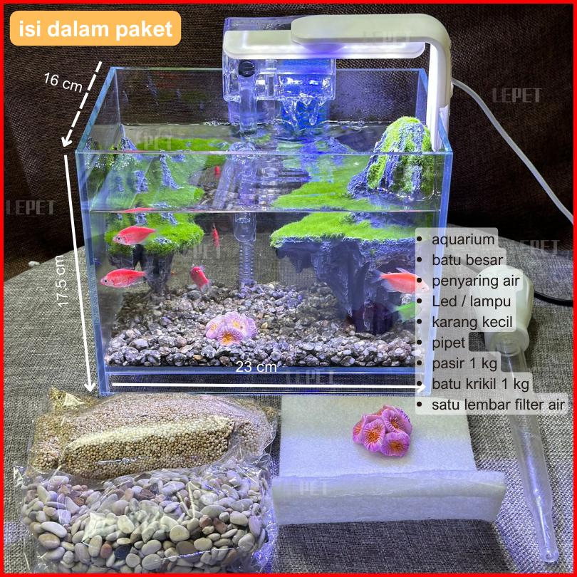 Lepet Akuarium Ikan Mini 230 Tangki Ikan Mini Dengan Filter Dan Lampu Led