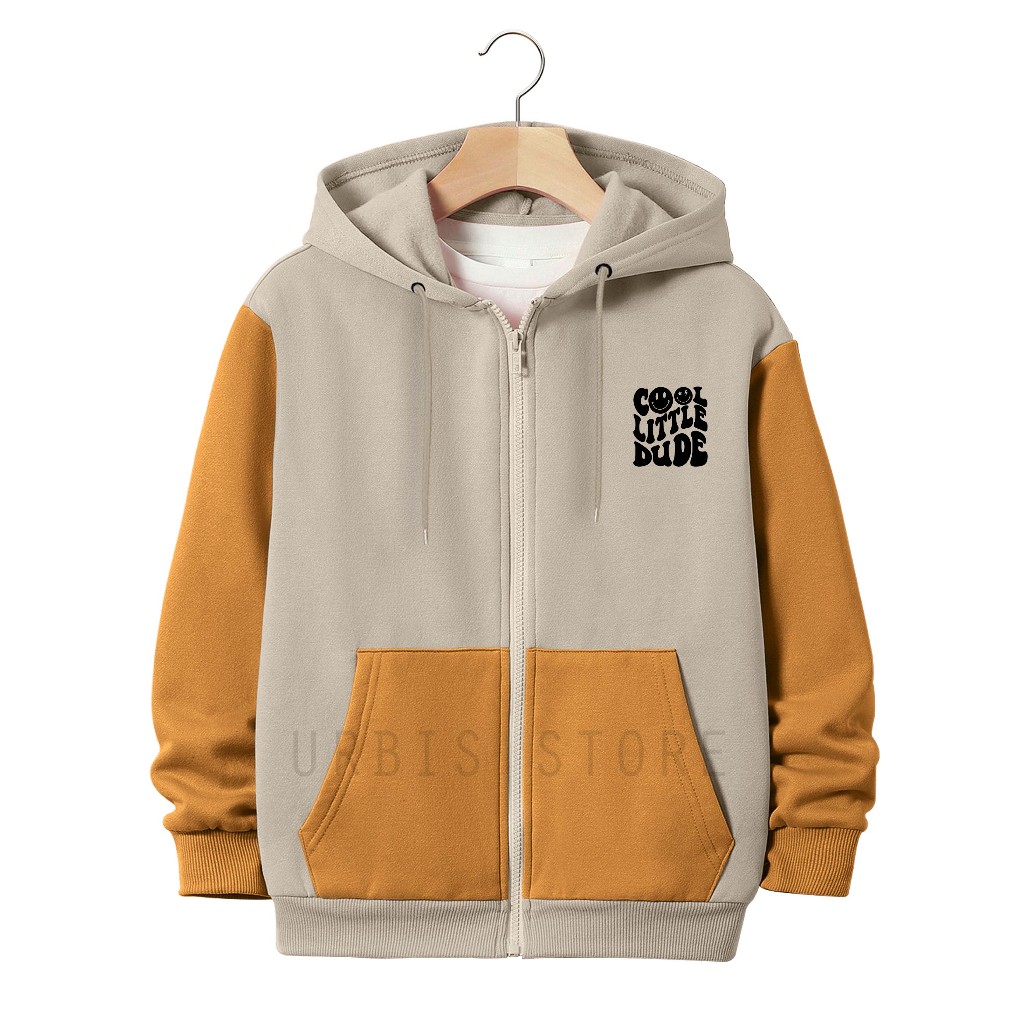 ( PROMO )Jaket Zipper Anak Laki-laki Perempuan Usia 3-13 Tahun Sablon COOL KOTAK Kombinasi Fleece Tebal URBIS