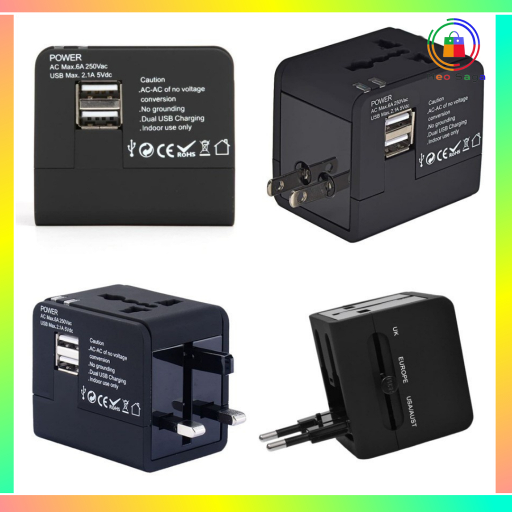 Travel Adaptor Universal 2.1A Fast charging Colokan adapter Dual USB Port