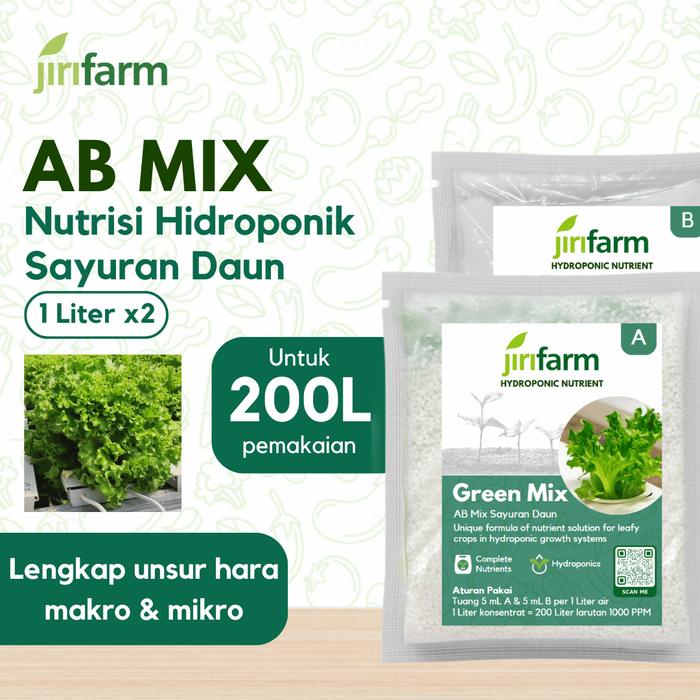 JIRIFARM - Nutrisi AB Mix Pupuk Hidroponik Sayuran Daun Buah dan Tanaman Tanah - Sayuran Daun 100L Sachet