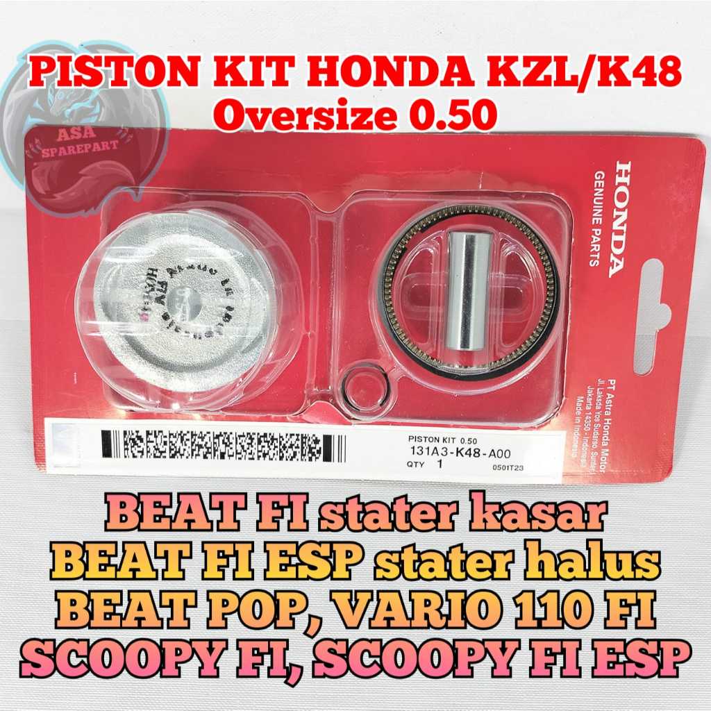 DISCON Piston Kit set KZL / K48 Asli Original Motor Honda Ori Ahm Beat Fi Statet kasar , Beat Fi ESP Stater Halus , Beat