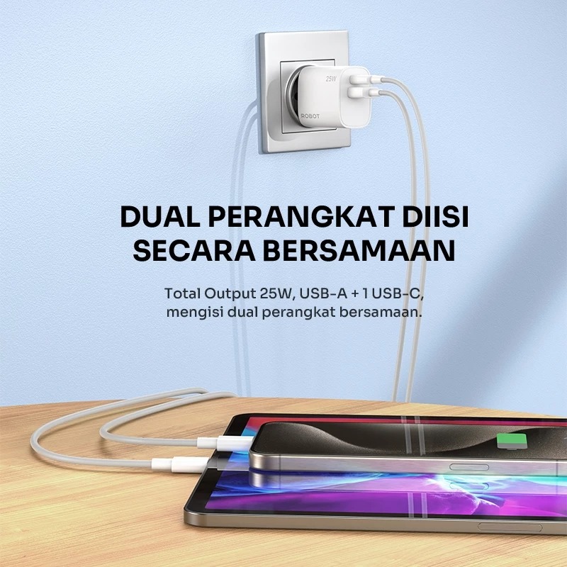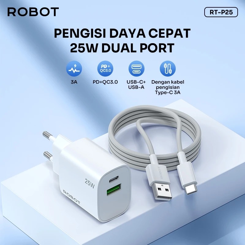 Charger Set ROBOT Quick Charging 3.0 USB A To Type C Dual Output 3A 25W RT-P25 Original [GRATIS ONGKIR]