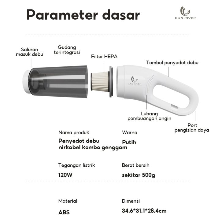 HAN RIVER Vacuum Cleaner 20000Pa 5 in 1 Vacuum Rumah Kasur Dan Mobil Penyedot Debu Rumah
