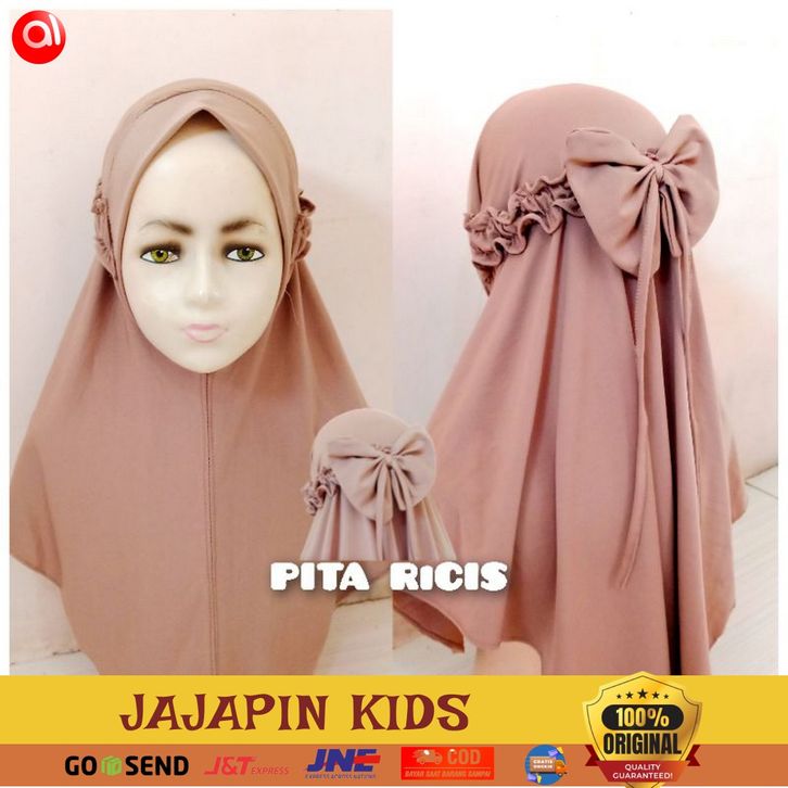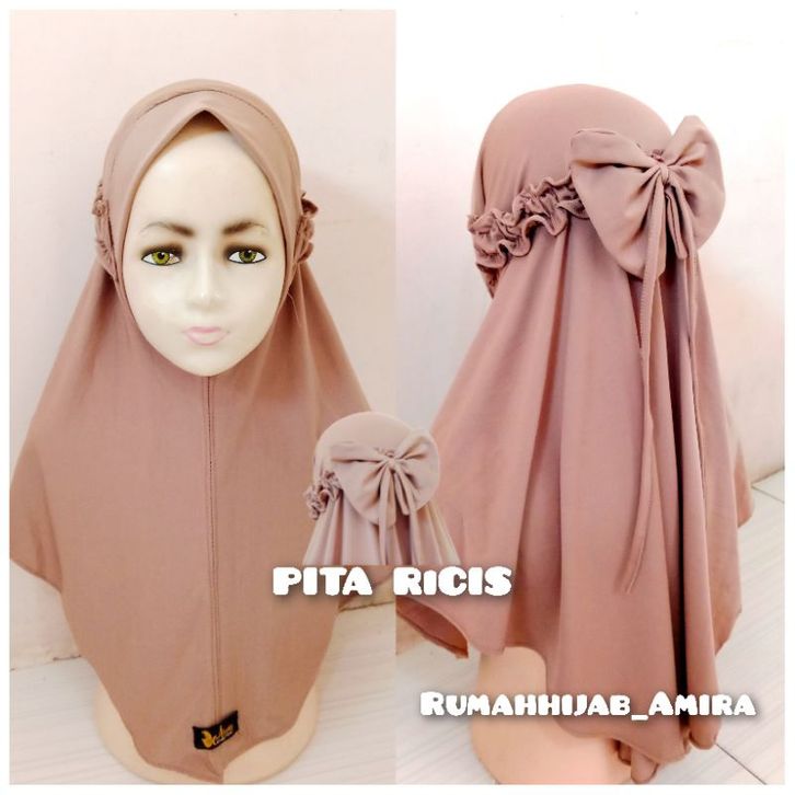 Kerudung Anak Jilbab Pita Ricis Jersey Premium 4 Sampai 10 Tahun