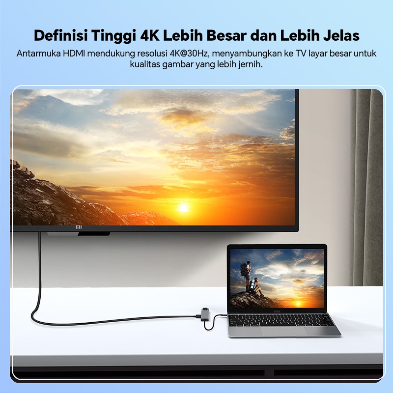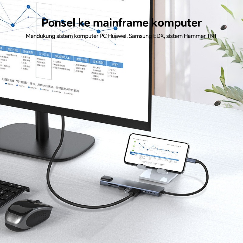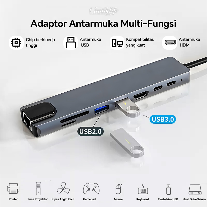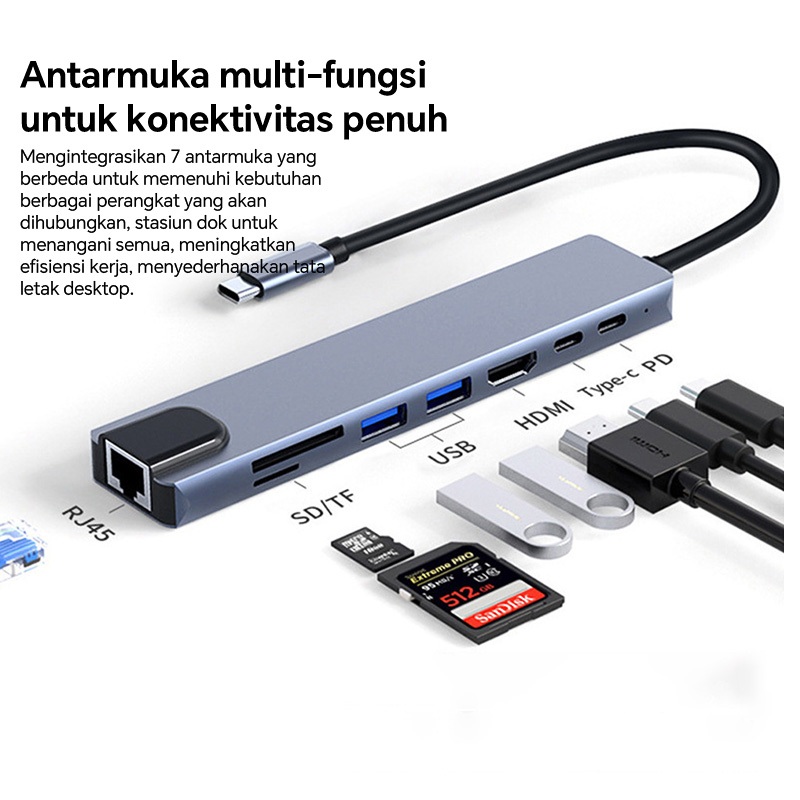8 in 1 Multi Converter USB3.0 HUB Type C Adapter RJ45 Ethernet 4K HDMI Kabel 100M Fungsi OTG Support SD TF Card Reader D
