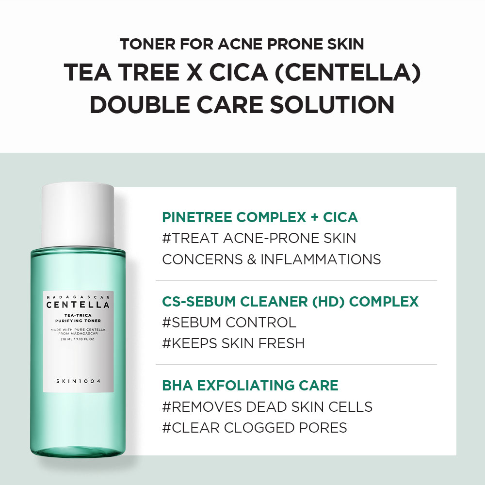 SKIN1004 [Tea Trica Basic 4] Toner 210ml+ Ampoule 100ml+BHA Foam 125ml+ B5 Cream 75ml