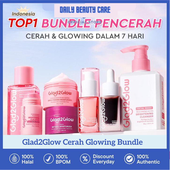 Glad2Glow Cerah Glowing Bundle all in 1 7in1-Brightening Moisturizer+Serum+Cleanser+toner+Peeling solution+Retinol 10%