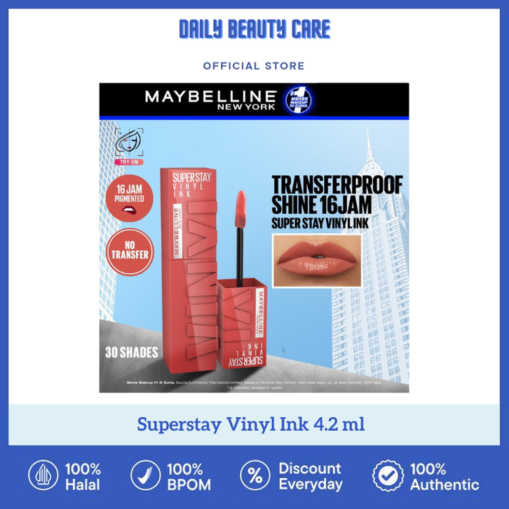 MAYBELLINE Superstay Vinyl Ink 4.2 ml - Shiny Pigmented Liquid Lipstik Lipstick Make Up Lipcream Longlasting Waterproof