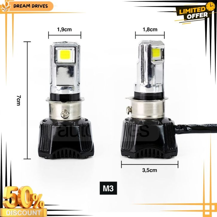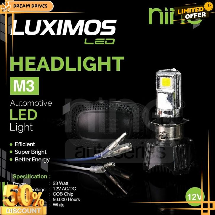 LAMPU LED UTAMA MOTOR 3 SISI H6 H4 H7 HI LOW NINE LUXIMOS M3 SUPER BR*GHT PUTIH
