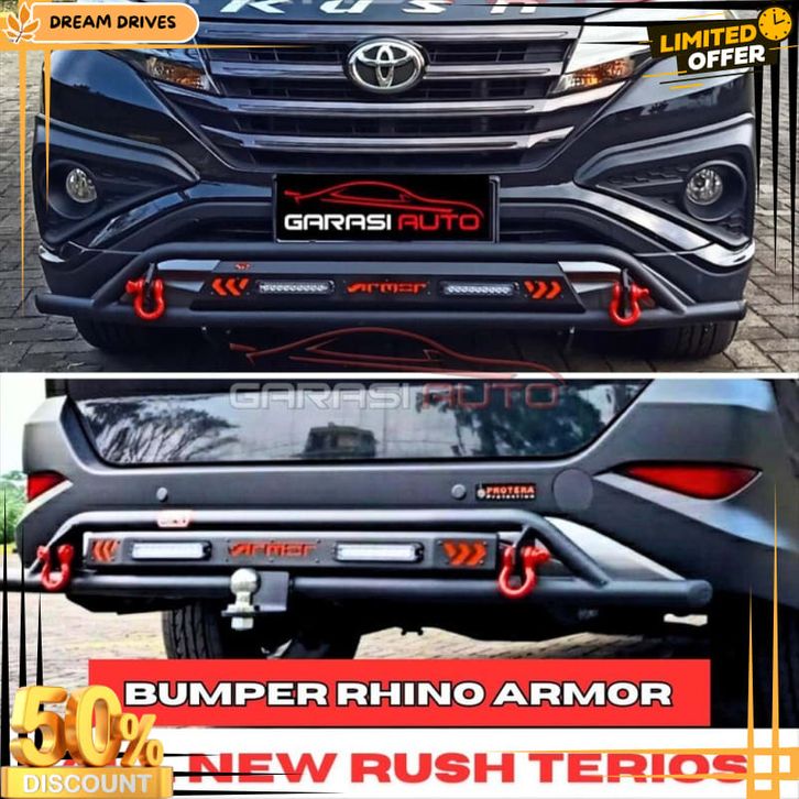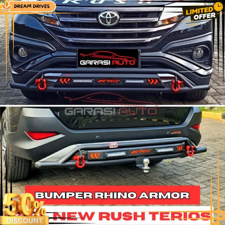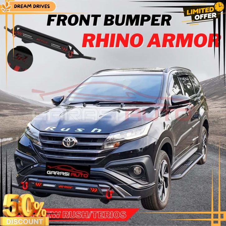 Paket Tanduk Towing All New Rush Terios Bumper RHINO ARMOR Depan Blkng