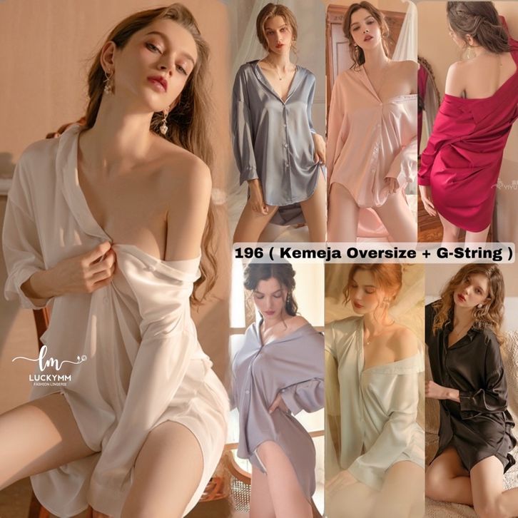 kemeja Sexy lingerie oversize Baju tidur satin Bigsize 196