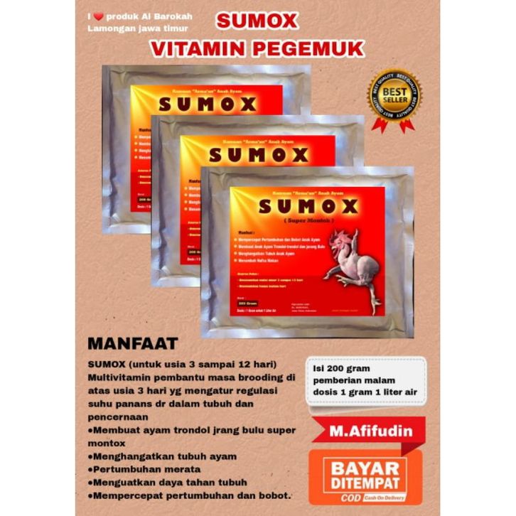 ( HARGA PROMO ) SUMOX VITAMIN PENGGEMUK-SUPLEMEN AYAM UNTUK USIA DINI USIA 3 HARI SAMPAI 15 HARI