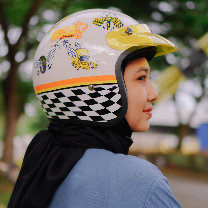 Helm Bogo Retro Motif Piston Speed Custom Helem Pria Wanita Hijab SNI