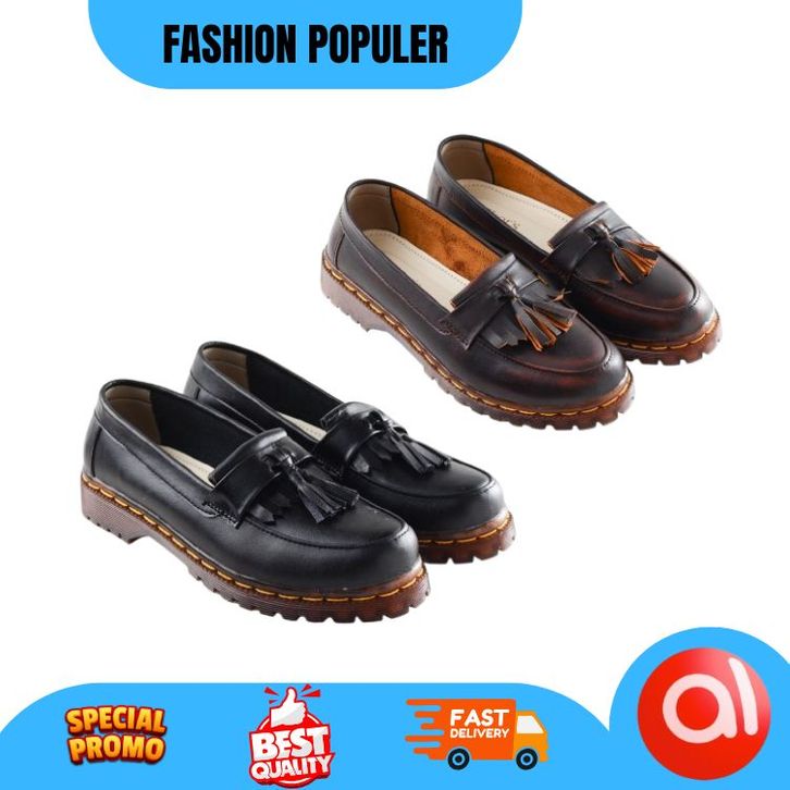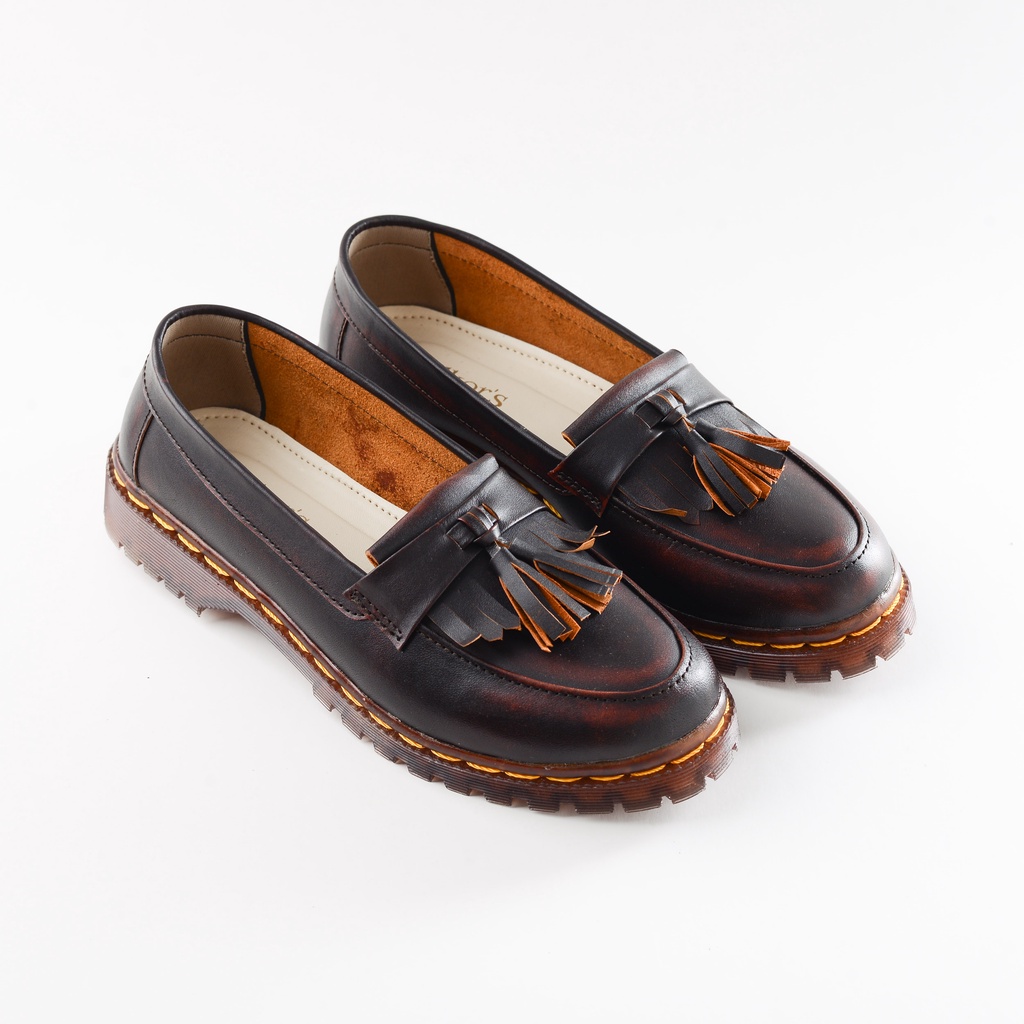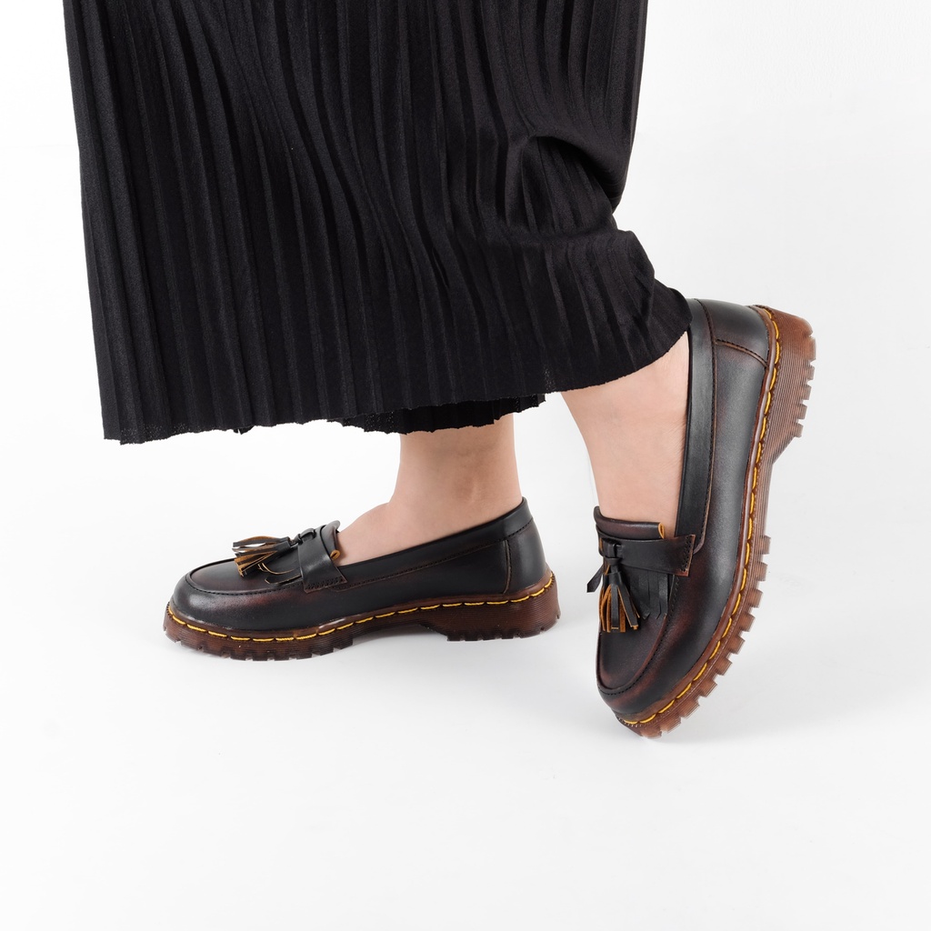 Sepatu Dokmart Wanita Loafer Kulit Cokelat Bros Up