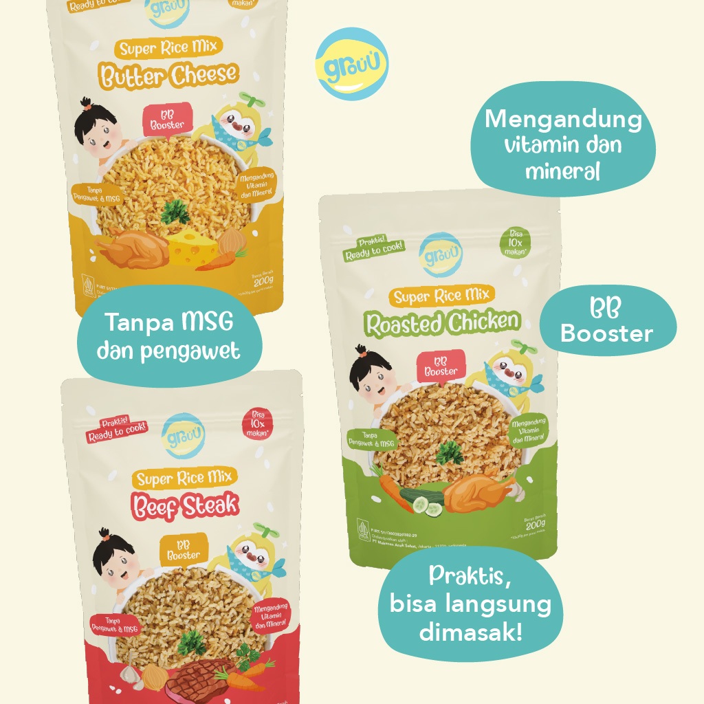 ( PROMO )Grouu - Super Rice Mix Beras MPASI BB Booster BB Rice Nasi Instan - 200gr - NO MSG