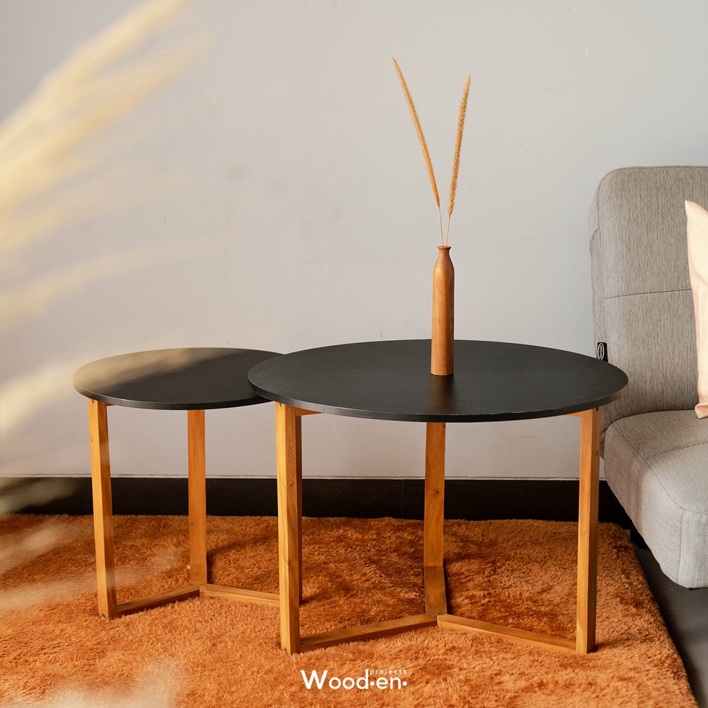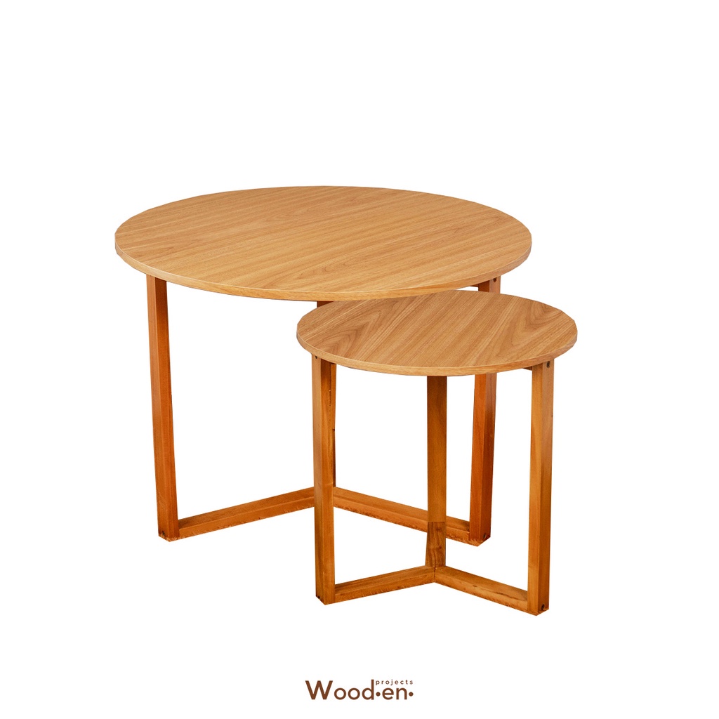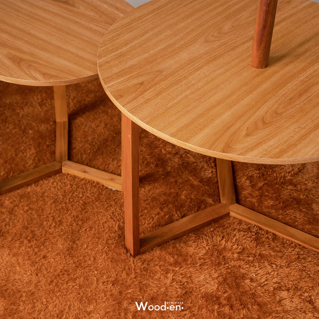 Meja Bulat Sudut Ruang Tamu Keluarga Rumah Kayu Minimalis Aesthetic -MJL67 SET