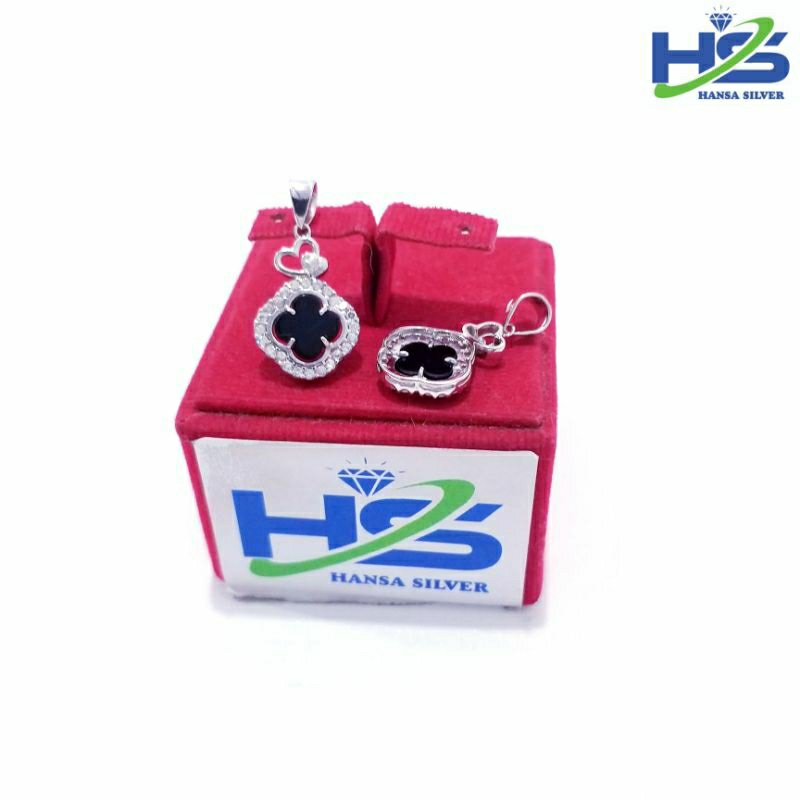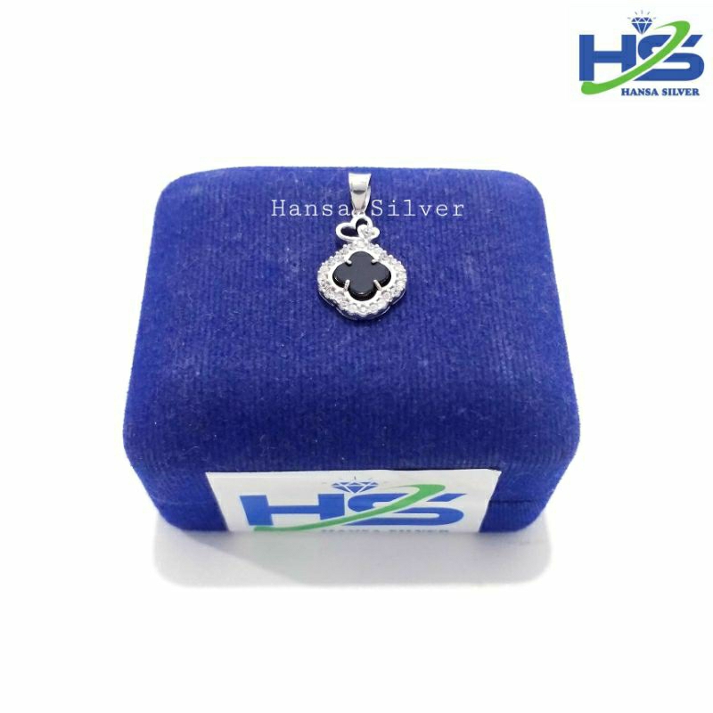 Liontiin Perak Asli 925 Lapis Ems Putih Model Batu Hitam - Perhiasan Perak Asli Anti Karat