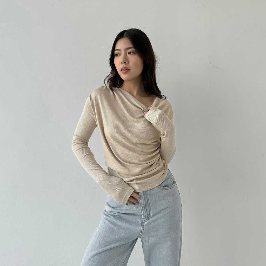 Atasan Knit Wanita Korean Top Baju Knit Wanita Lengan Panjang Basic Long Sleeve