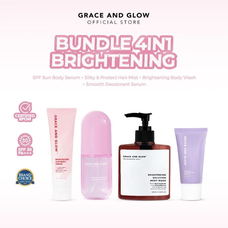 GRACE AND GLOW 4in1 Brightening Series Body Care Set Perawatan Tubuh Mencerahkan Body Wash Serum Deodorant Hair Mist