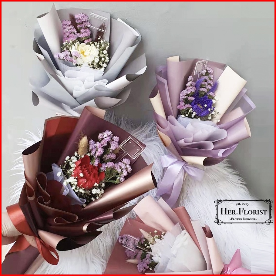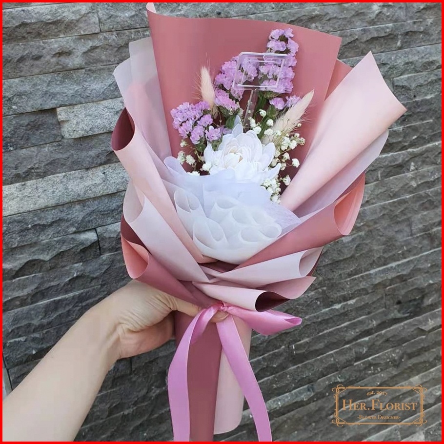 Her.florist Aster Single Soap Dried Flower Bouquet Buket Bunga Sabun Aster Bunga Kering Import Buket Bunga Buket Wisuda