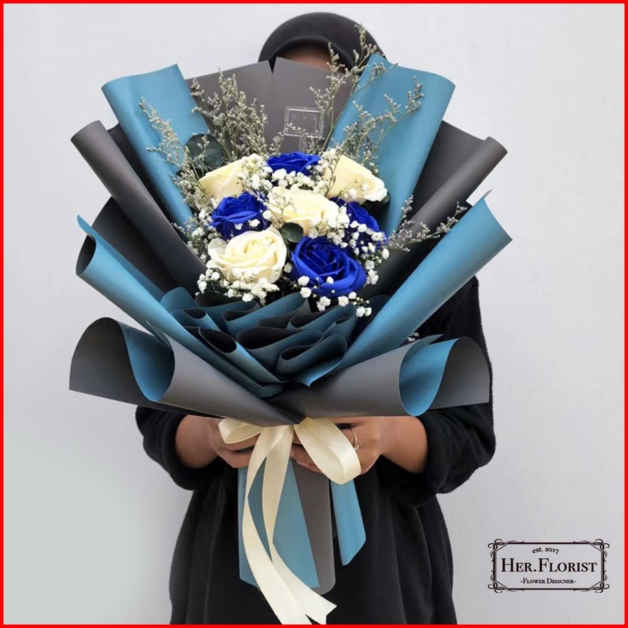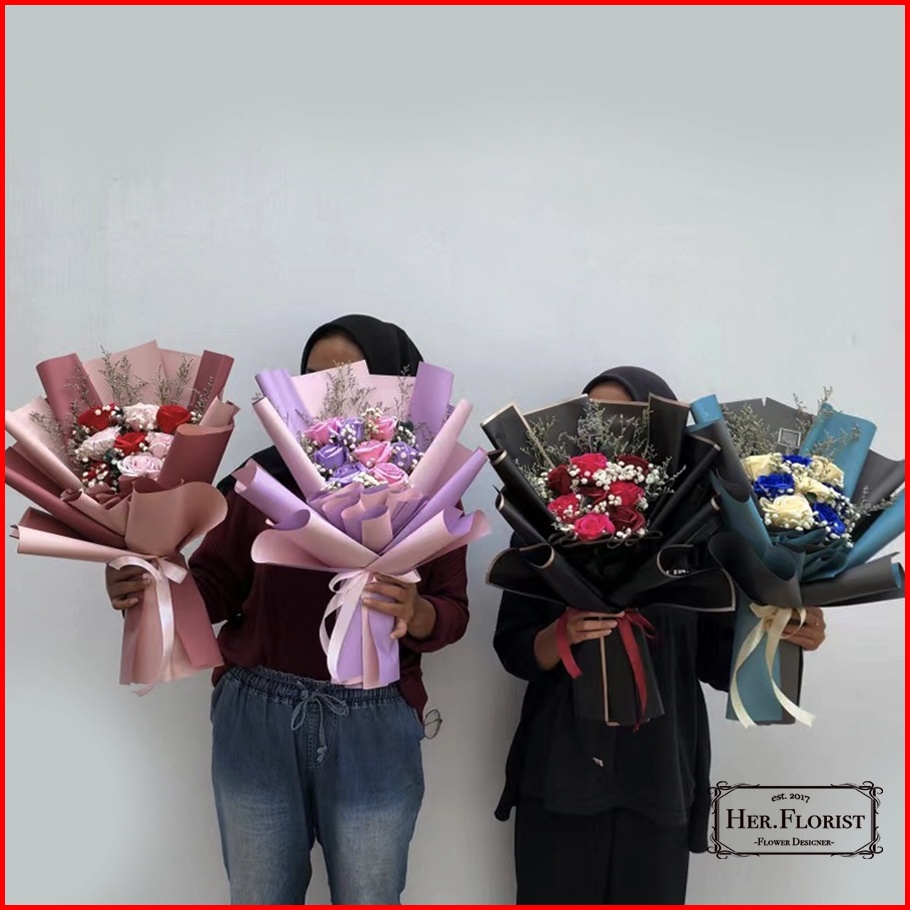 Her.florist 8pcs Premium Soap And Dried Flower Bouquet Buket Bunga Sabun Dan Bunga Kering Kado