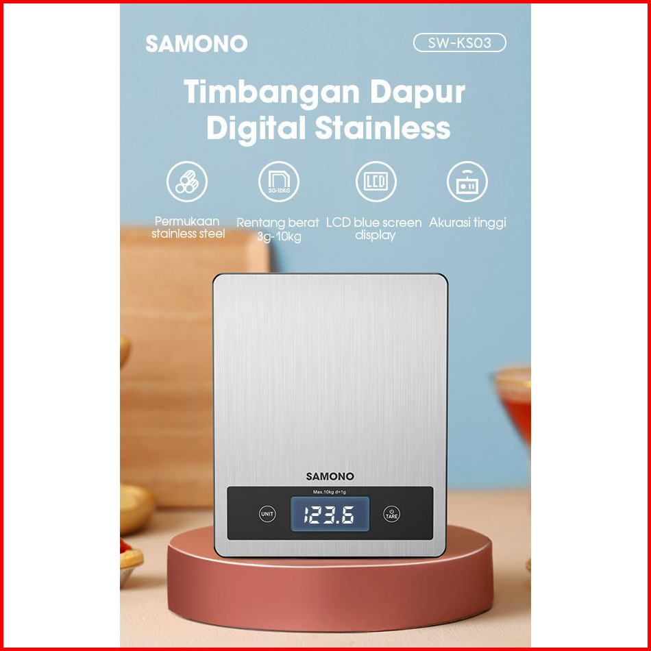 Samono Kitchen Electronic Scale 10 Kg Timbangan Dapur Digital Portable Garansi 1 Tahun Sw-ks03