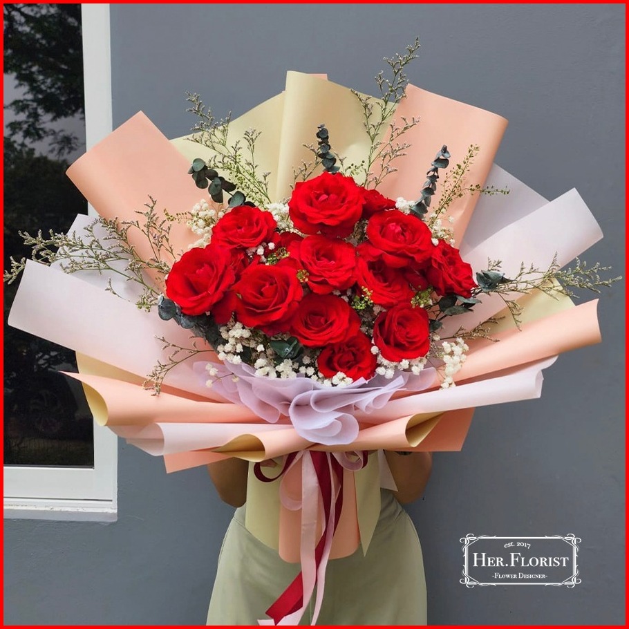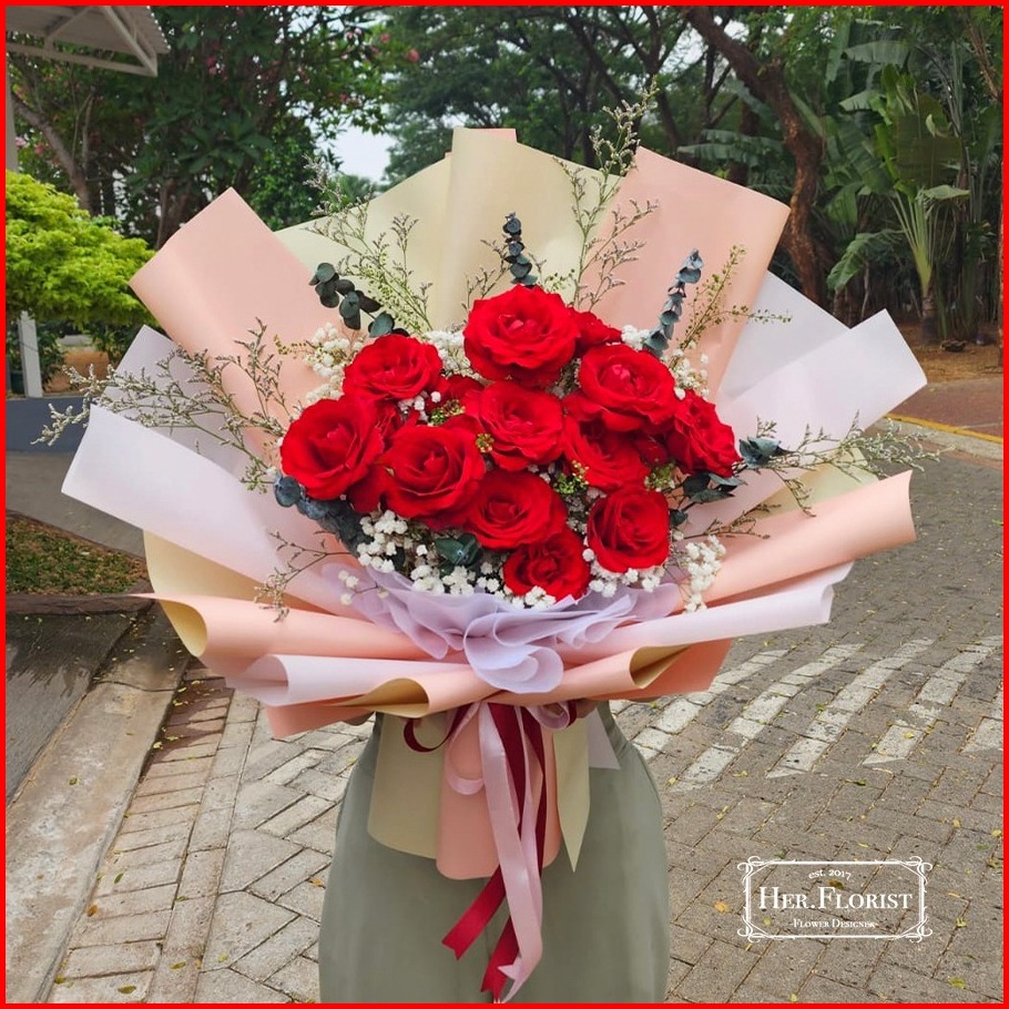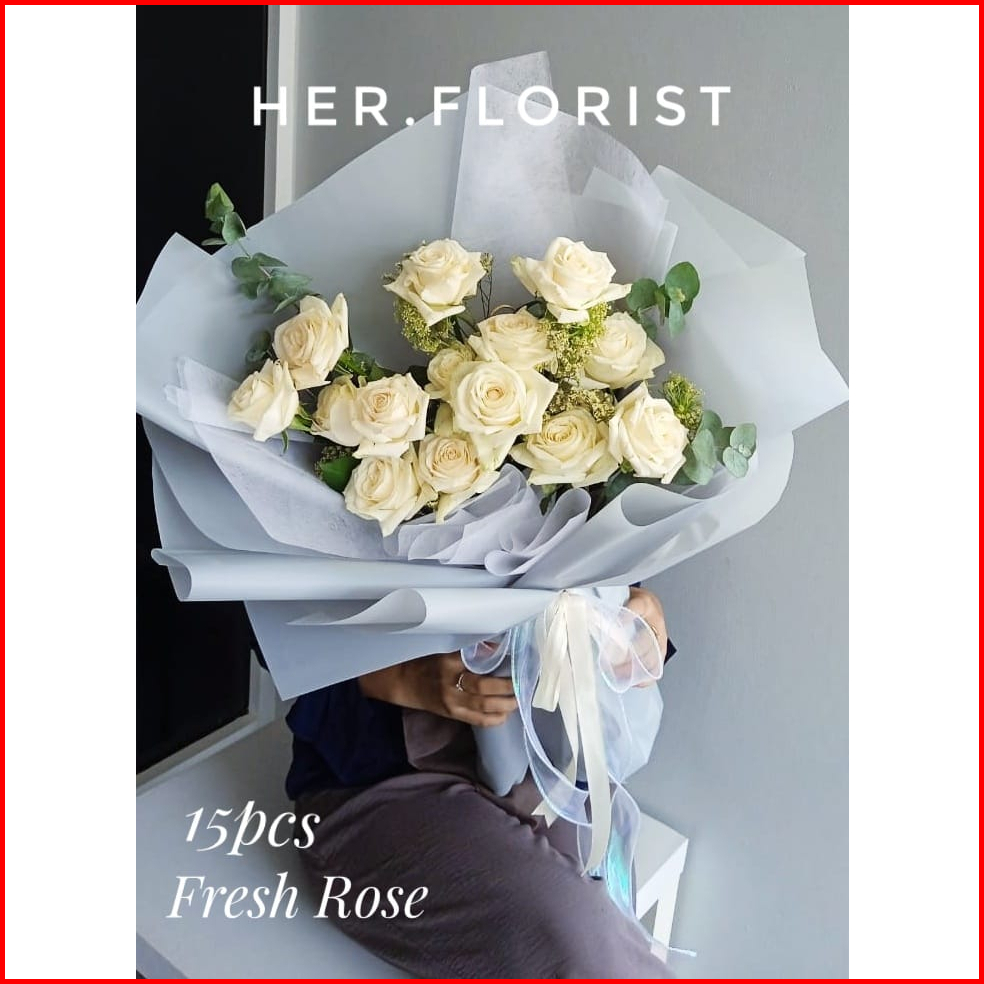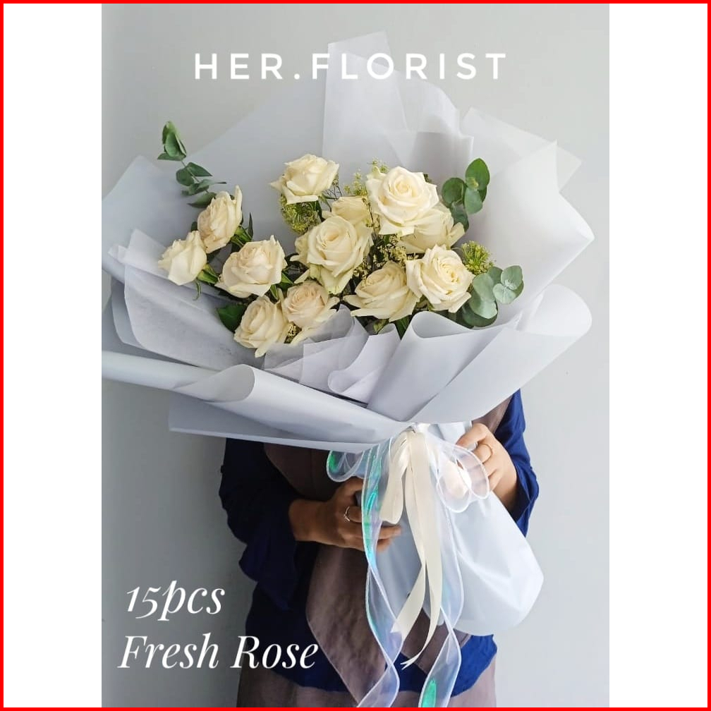 Her.florist Fresh Flower 15pcs Rose Bouquet Buket Bunga Asli Bouquet Bunga Mawar Fresh Kado Wisuda Ulang Tahun