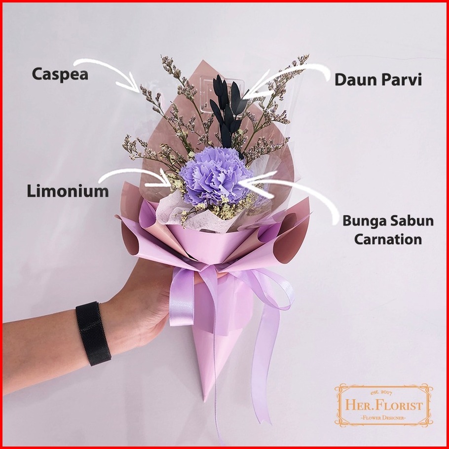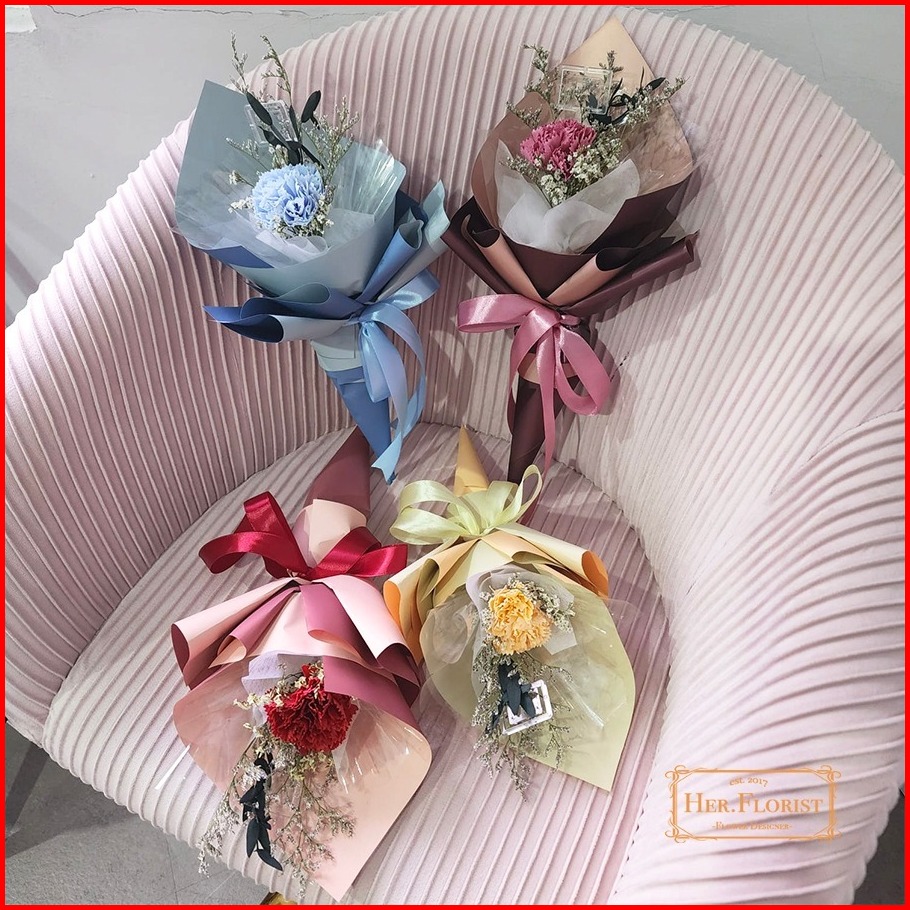 Her.florist-new Design Carnation Single Soap Dried Flower Bouquet Buket Bunga Sabun Carnation Bunga Kering Bunga Artific